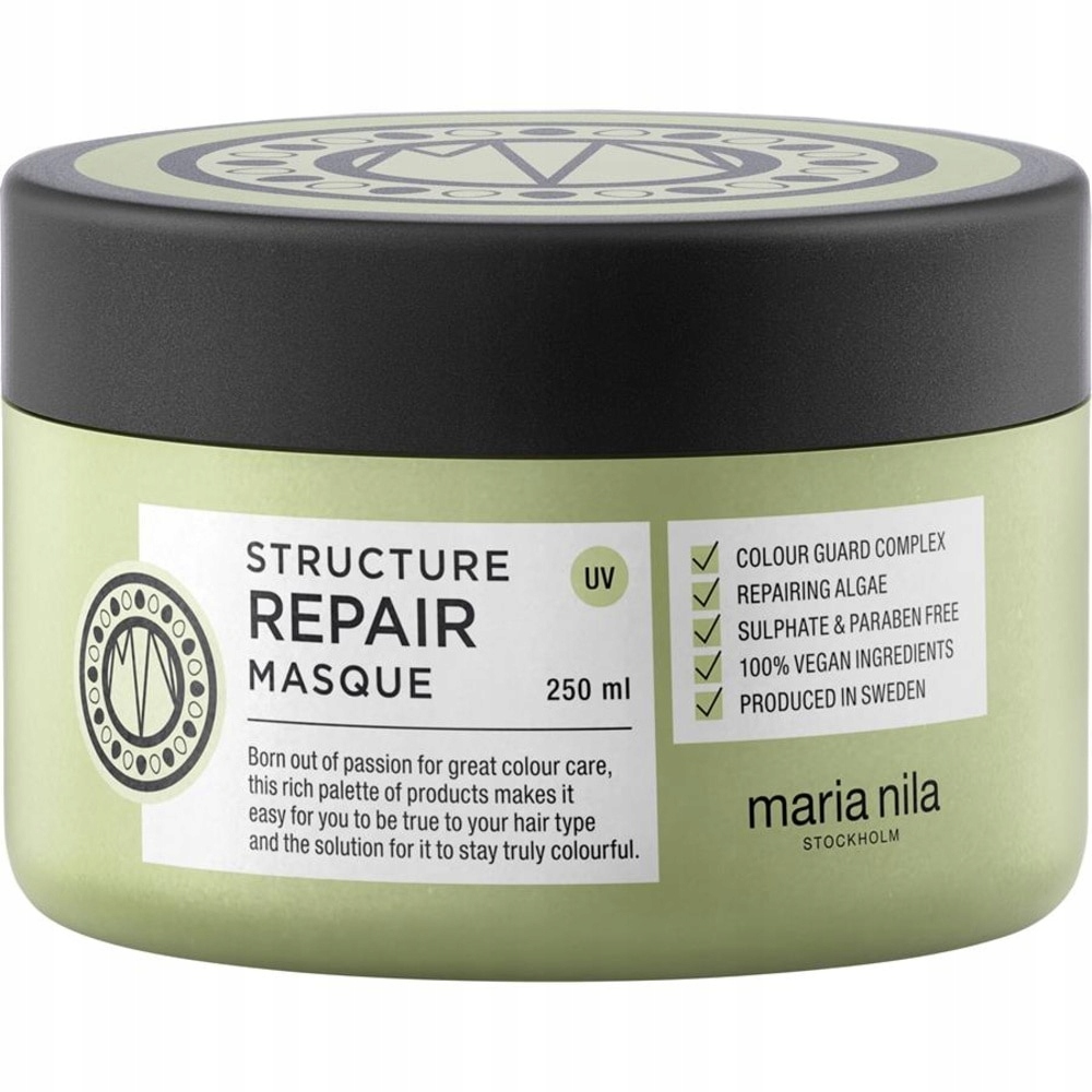 Skuteczna maska zmiękczająca i nawilżająca zniszczone, suche i poddane zabiegom chemicznym włosy oraz zwalcza elektryzowanie się. Regenerujące algi pomagają włosom odzyskać naturalną siłę, dodając miękkości i blasku zdrowo wyglądającym włosom. Maseczka Structure Repair ma delikatny zapach wanilii, róży i jaśminu.