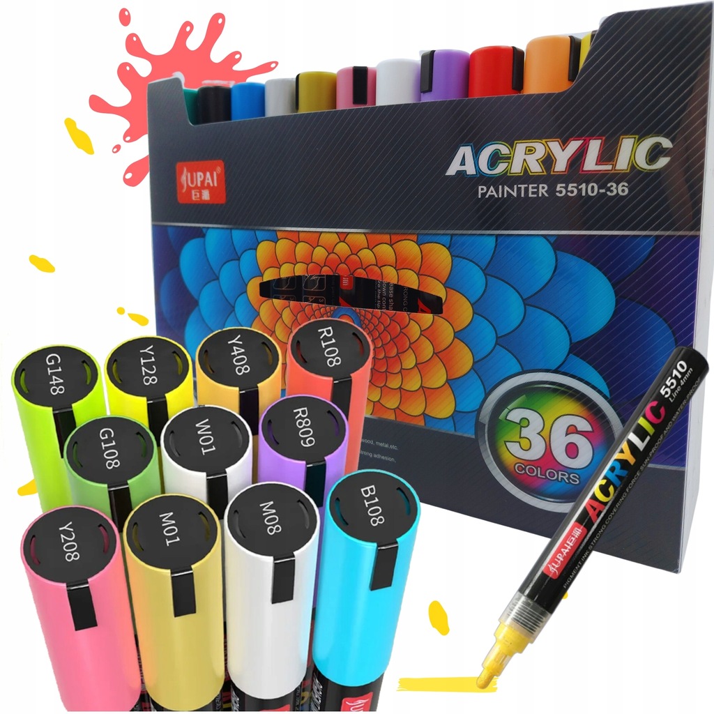 MARKERY AKRYLOWE ZESTAW 36 SZTUK Pisaki Flamastry Mazaki Jupai WODOODPORNE