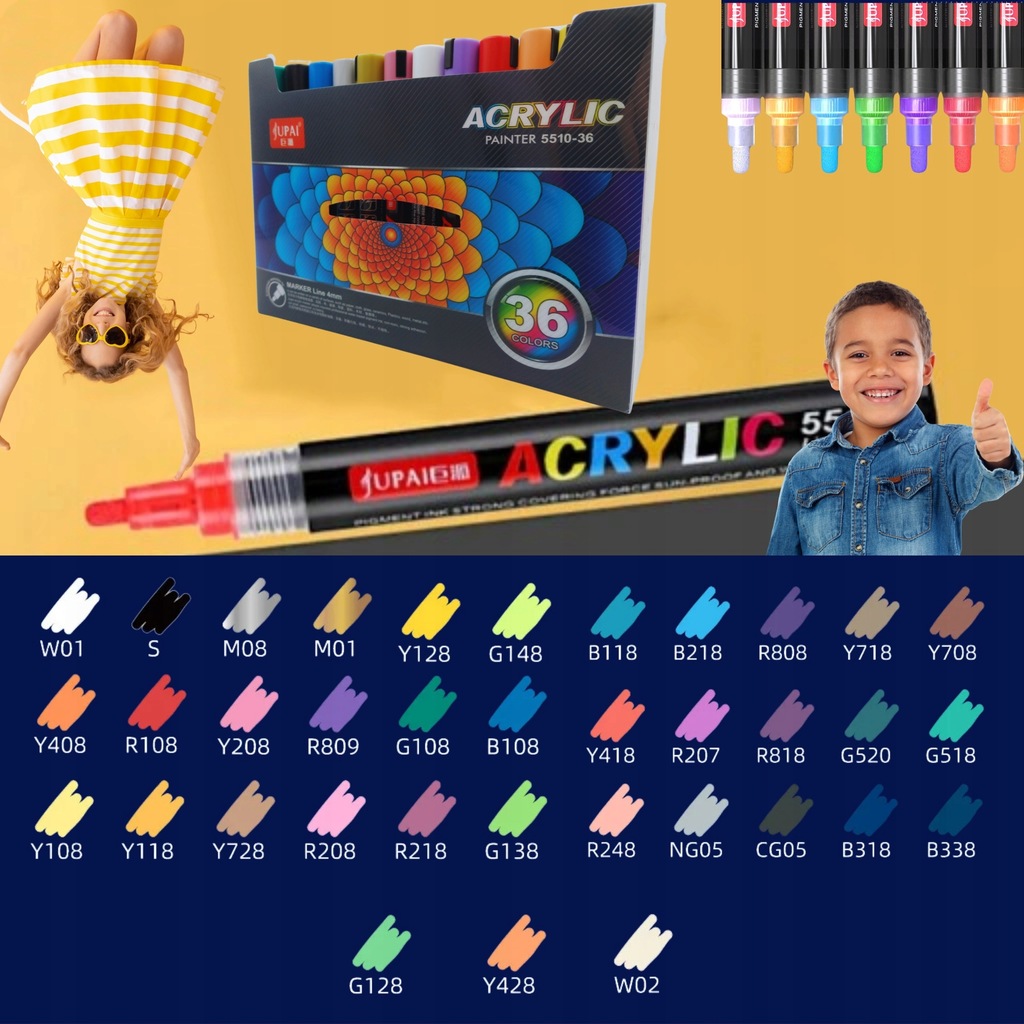 Długopisy akrylowe pisaki Markery 36 kolorów Zestaw markerów akrylowych.☀️