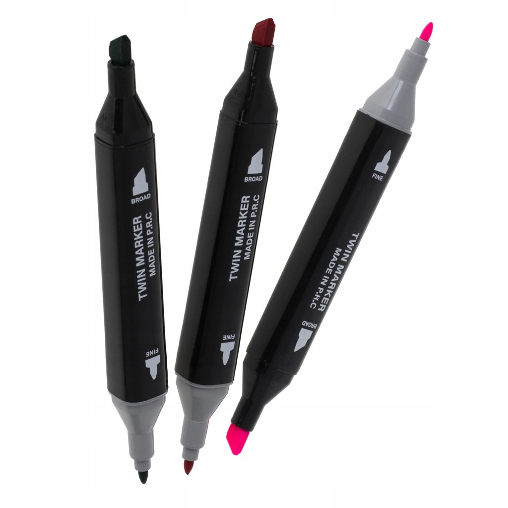 Każdy marker ma dwie końcówki, szeroką - idealną do zamalowywania większych powierzchni oraz cienką - do tworzenia cienkich i bardziej precyzyjnych linii, aby dopracować szczegółów. Odpowiednio dobrana końcówka zapewni szczegółowość rysunku lub lepsze jego pokrycie.