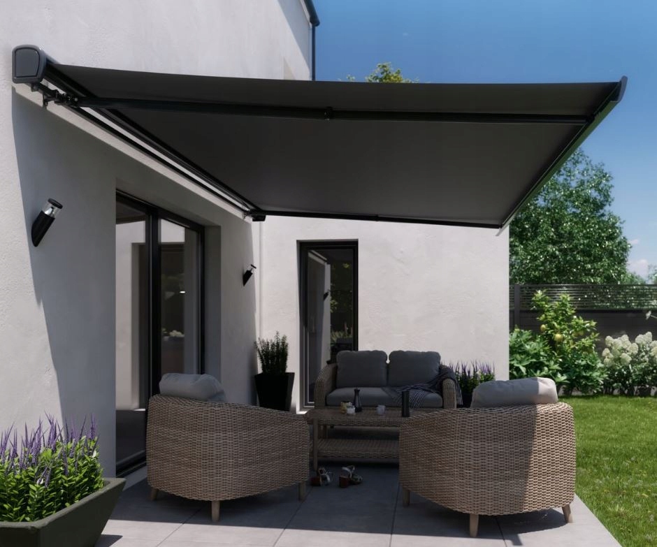 Markiza tarasowa rozwijana drążkiem 3x3,95m antracyt