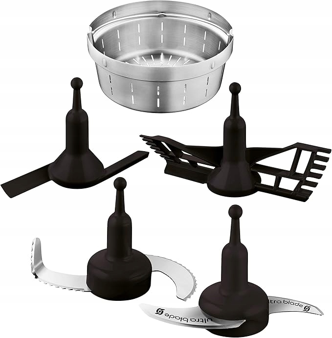 Zestaw zawiera etui z przydatnymi ostrzami, które pozwolą na wykonanie praktycznie wszystkich czynności od ugniatania ciasta po szatkowanie, czy gotowanie.