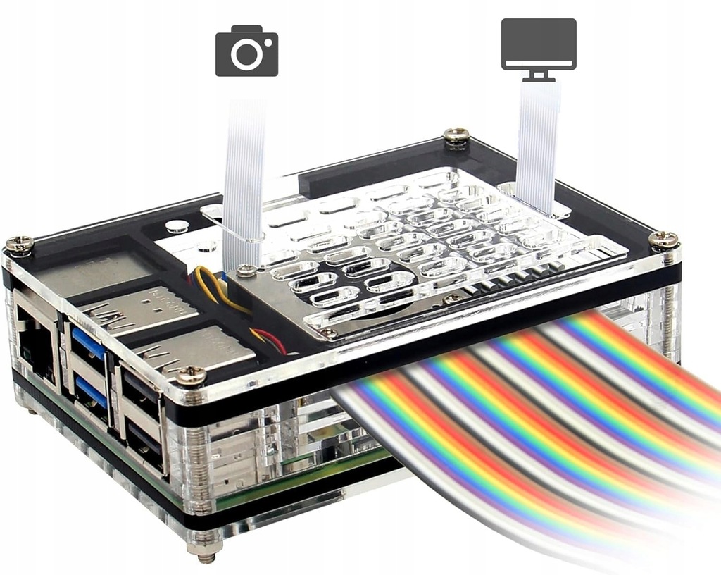 - Wysokiej jakości, błyszcząca, przezroczysta obudowa do Raspberry Pi 5