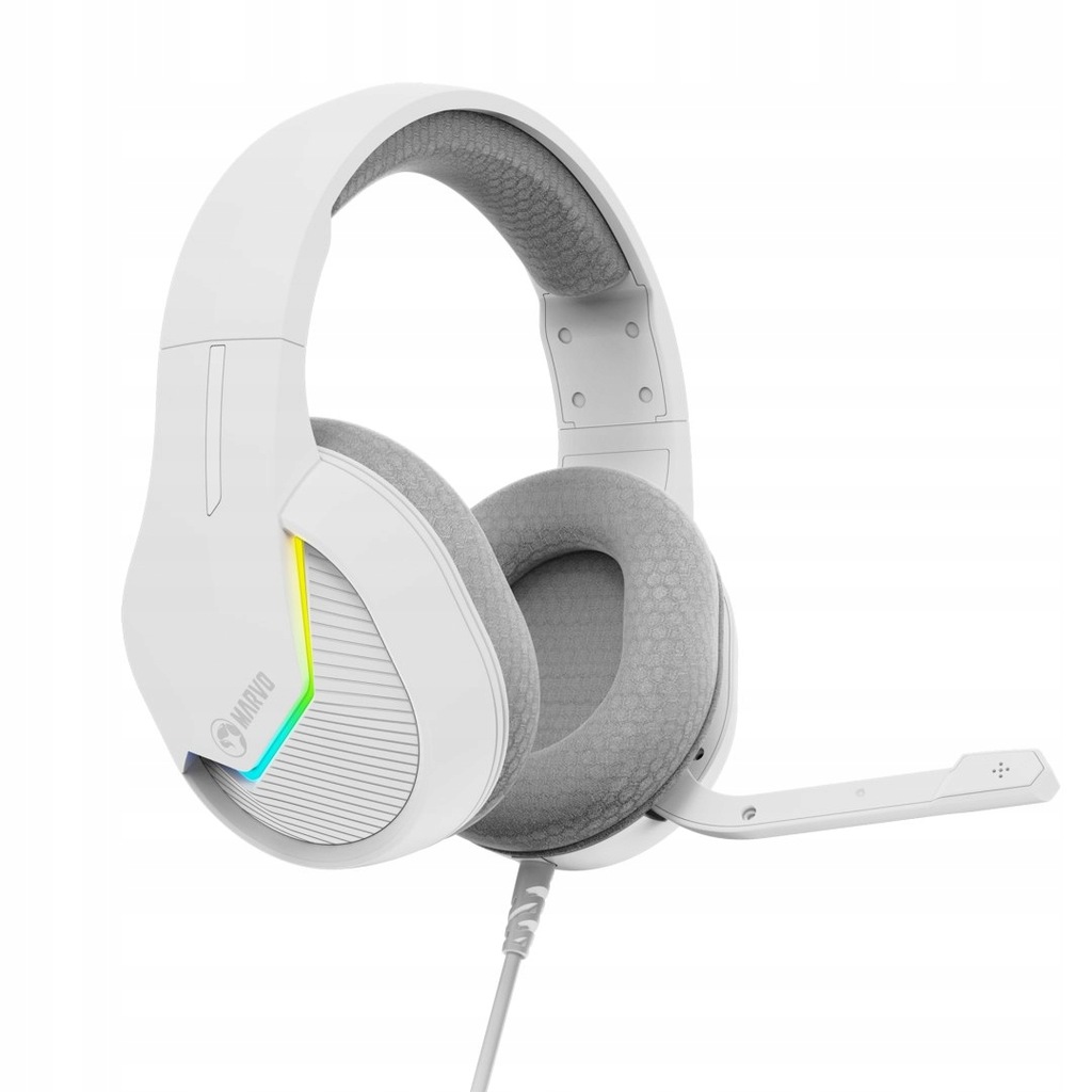 Marvo H8618, słuchawki z mikrofonem, regulacja głośności, biała, 2.0, USB (15020995193)