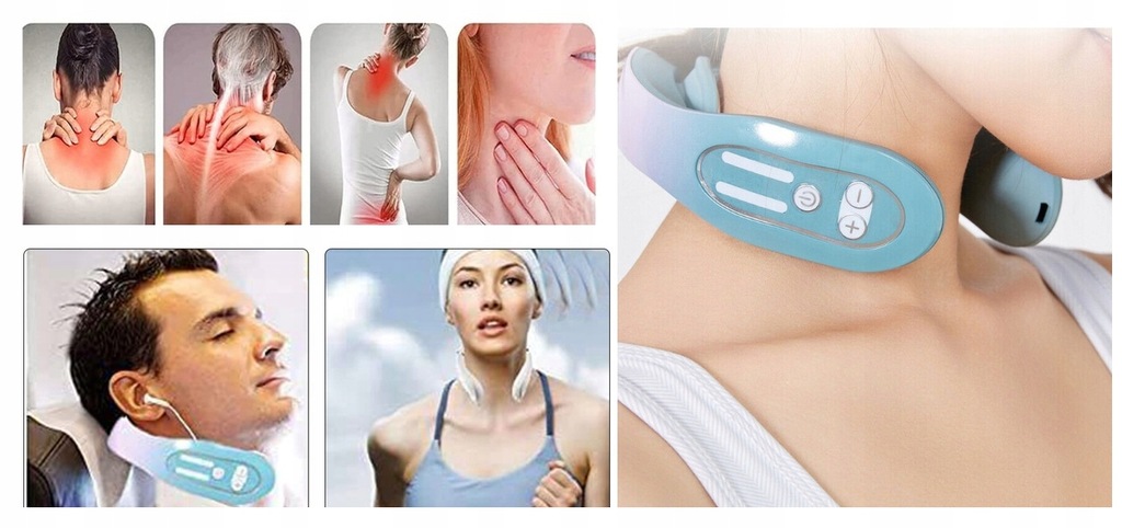 Wysyła delikatne impulsy przez szyję, stymulując mięśnie dla poprawy krążenia krwi, eliminując opuchliznę, łagodząc napięcie, ból i długotrwałe zmęczenie szyi, docierając do naturalnych punktów akupresury.