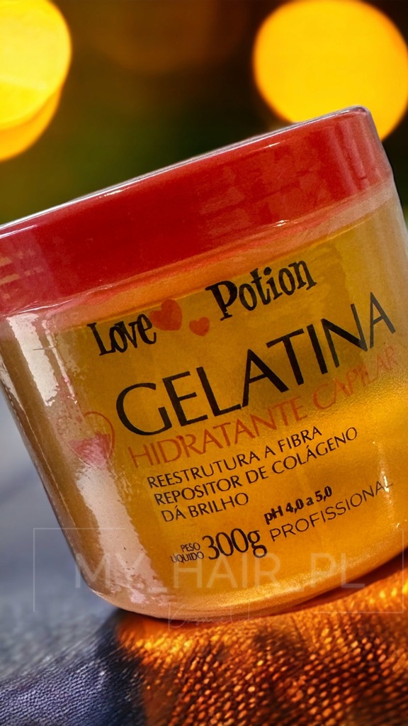 Love Potion Gelatina Hidratante Capilar -to wyjątkowa maska na bazie żelatyny, która intensywnie wygładza i nadaje włosom zdrowy wygląd. Dzięki unikalnej formule produkt zapewnia efekt lśniących, miękkich i jedwabistych włosów. Maska doskonale nadaje się do włosów suchych, matowych i trudnych do ujarzmienia, gwarantując profesjonalną pielęgnację.