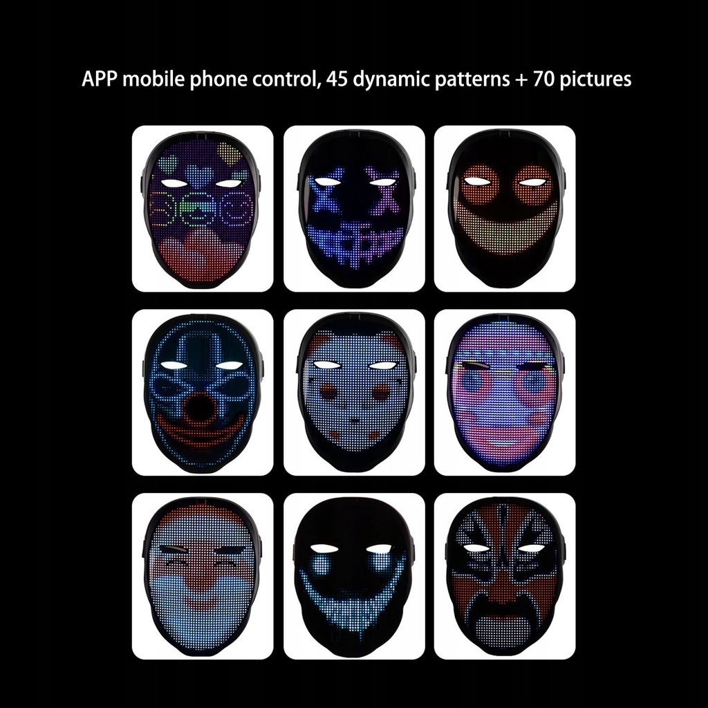 1. Maska została wstępnie zainstalowana z 45 animacjami, 70 obrazami i 1 pętlą animacji. W tym przerażające animowane zdjęcia, ogień, serce, uśmiechnięta twarz, emotikony itp.