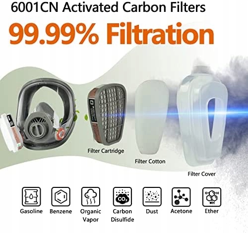 ✅Standardowy filtr dwuwarstwowy, filtr z włókna bawełnianego filtruje grube cząstki i drobny kurz, skrzynka filtra z węglem aktywnym filtruje szkodliwe substancje w powietrzu, pozwalając oddychać świeżym powietrzem.