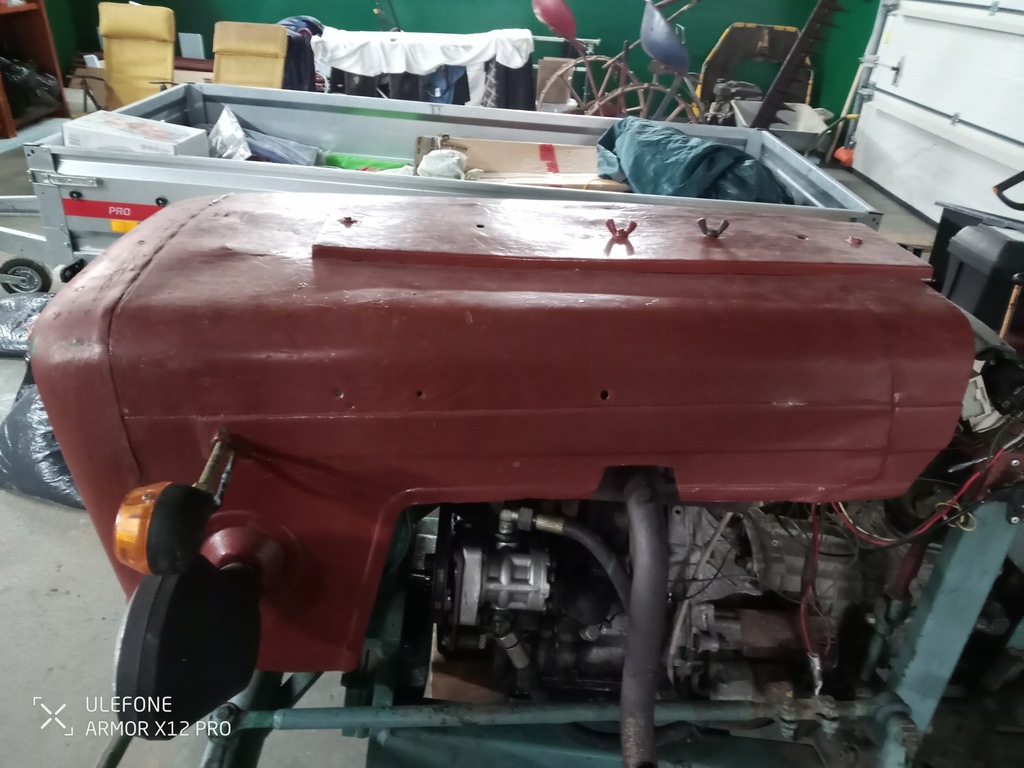 Sprzedam maskę widoczną na załączonych zdjęciach. Uwaga: maska nie zawiera przednich lamp pozycyjnych/drogowych, a jedynie dwa kierunki widoczne na zdjęciach. Maska pochodzi z Ursusa C330. Została skrócona i adoptowana pod traktorek z silnikiem z malucha. W porównaniu do oryginalnej maski zostały w niej wykonane dodatkowe otwory, przednia cześć maski została skrócona do wysokości ok. 49 cm, maska została skrócona do całkowitej długości ok. 92 cm. Zachęcam do zakupu!