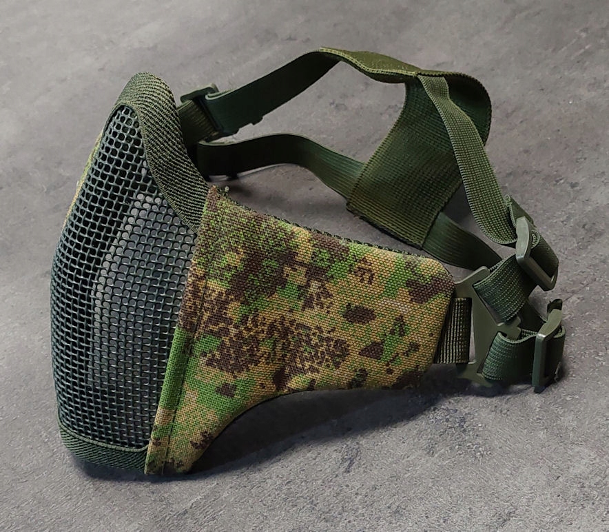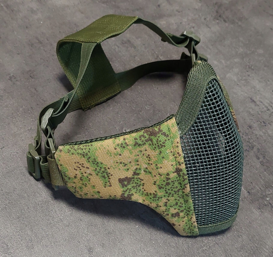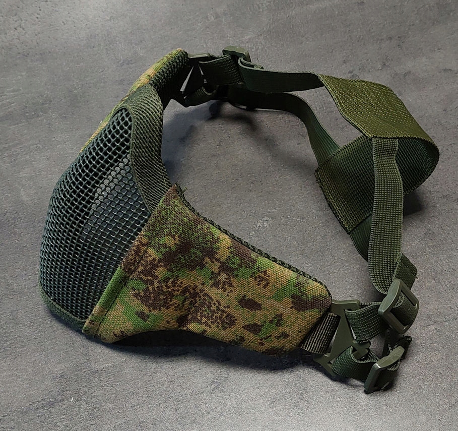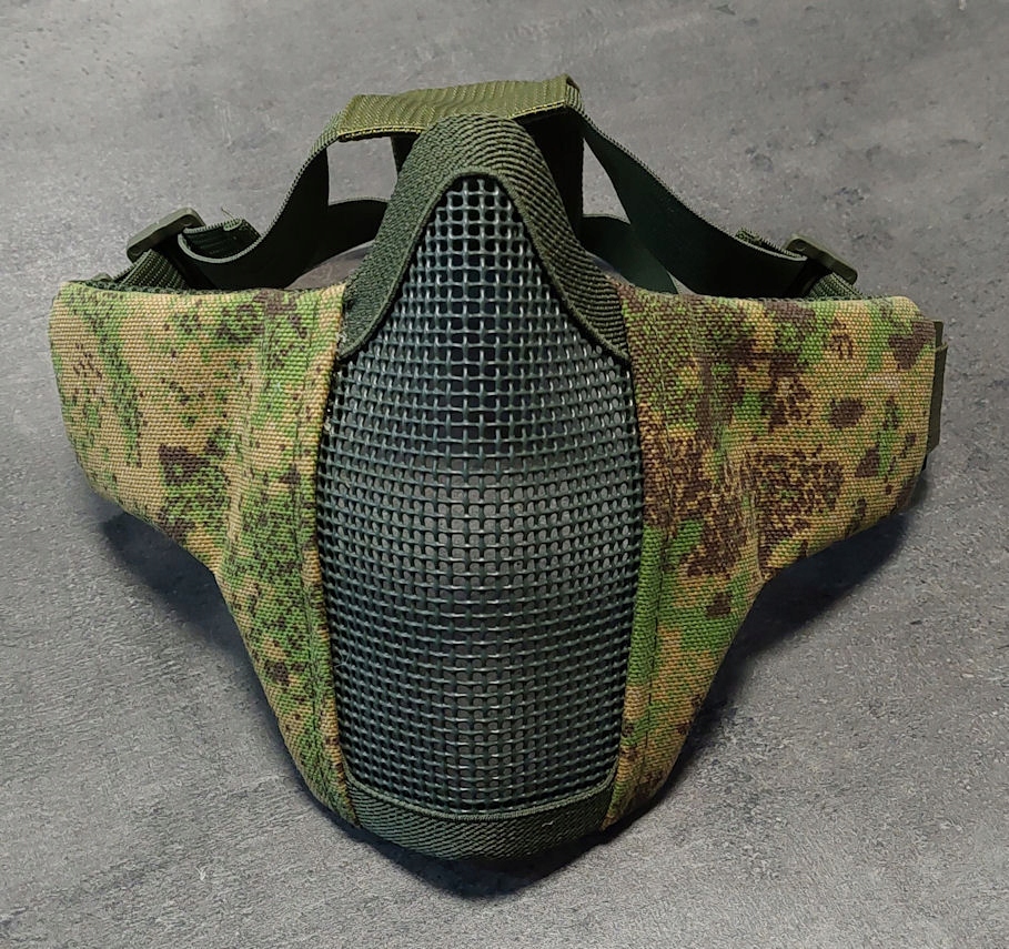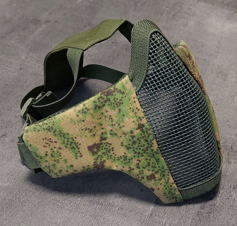Maska ochronna typu Stalker w odchudzonej i bardzo lekkiej edycji Evo. Maska wykonana została z wytrzymałego nylonu opiewającego jej zewnętrzną część oraz mocnej aczkolwiek lekkiej stalowej siatki. Wewnątrz, na policzkach, maska posiada przyjemne, gąbkowe wypełnienie typu mesh znacznie poprawiające komfort użytkowania. Siatkę natomiast pokryto specjalnym laminatem uodparniającym ją na warunki atmosferyczne a tym samym rdzę. Dzięki zamontowaniu siatki jedynie po środku ochraniacza, maska nie ciąży oraz nie wymaga dodatkowego modelowania. Co więcej praktycznie sama układa się do twarzy pozostawiając duży komfort swobodnego oddechu przy jednoczesnej ochronie najbardziej newralgicznych części twarzy. Stabilność zapewniają 4 regulowane paski z szeroką taśmą centralną opiewającą większą część potylicy.