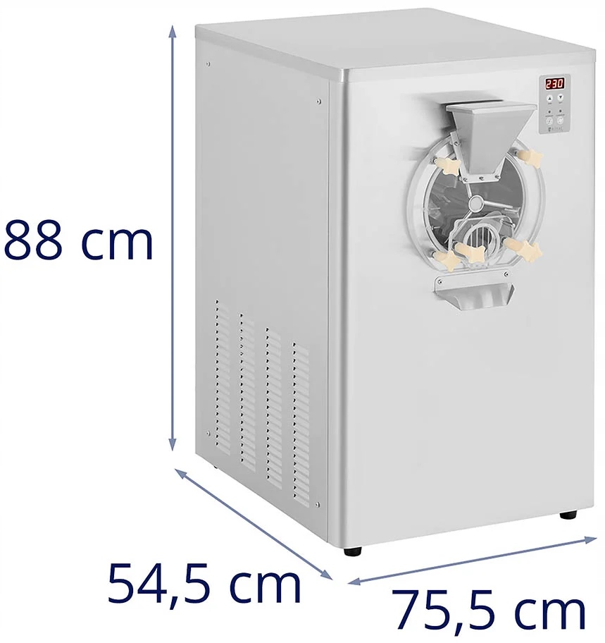 Szukasz profesjonalnej maszyny do lodów, dzięki której szybko wyczarujesz pyszny deser? Idealnie, ponieważ moc tego modelu (1500 W) pozwoli Ci w kilka chwil przyrządzić smakołyki dla Twoich klientów. Za pomocą cyfrowego panelu sterowania z łatwością ustawisz parametry robocze urządzenia.
