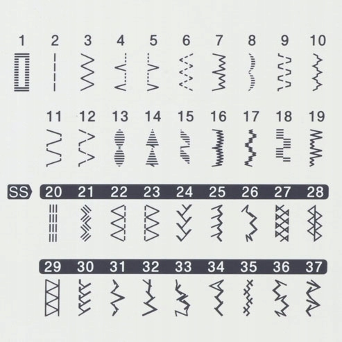 Wśród dostępnych ściegów znajdziemy ściegi użytkowe (stębnowy, zygzak, ścieg kryty), ściegi elastyczne (trójskok, potrójny stębnowy, ściegi overlockowe) oraz ściegi ozdobne. Dodatkowo maszyna posiada 1 rodzaj jednoetapowego obszywania dziurki na wymiar guzika. Dzięki temu przy pomocy specjalnej (dołączonej do zestawu) stopki w łatwy i szybki sposób wykończymy sobie pościel lub uszytą koszulę, a następnie za pomocą kolejnej stopki doszyjemy odpowiedniej guziki.