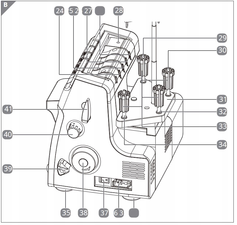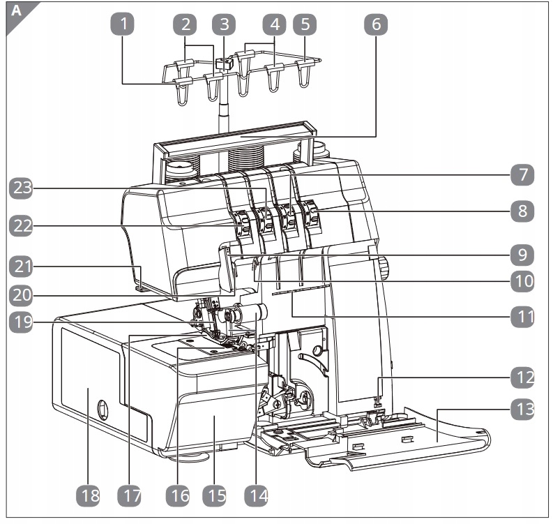 24. Tylna prowadnica nici Górna nić chwytacza