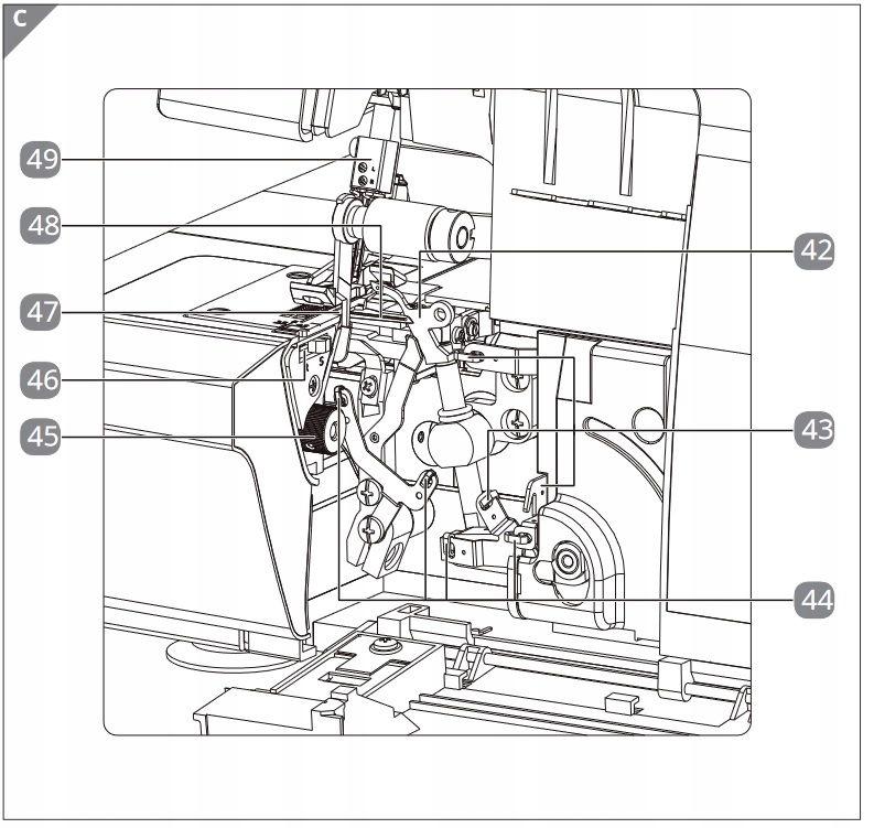 43. Prowadnik nici dla górnej nici chwytacza