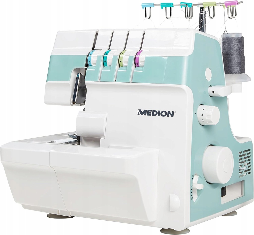 MEDION Maszyna do szycia overlock (elektryczna, 90 W, światło LED, cięcie jednym cyklem roboczym, bogate akcesoria, MD19169)