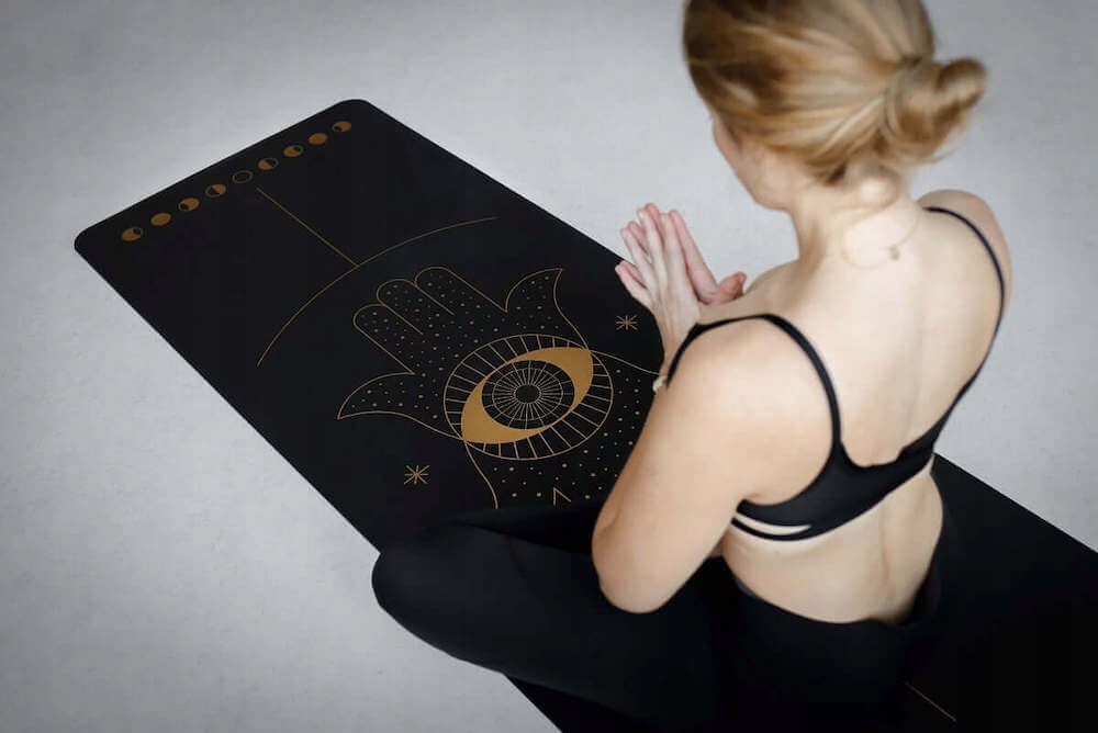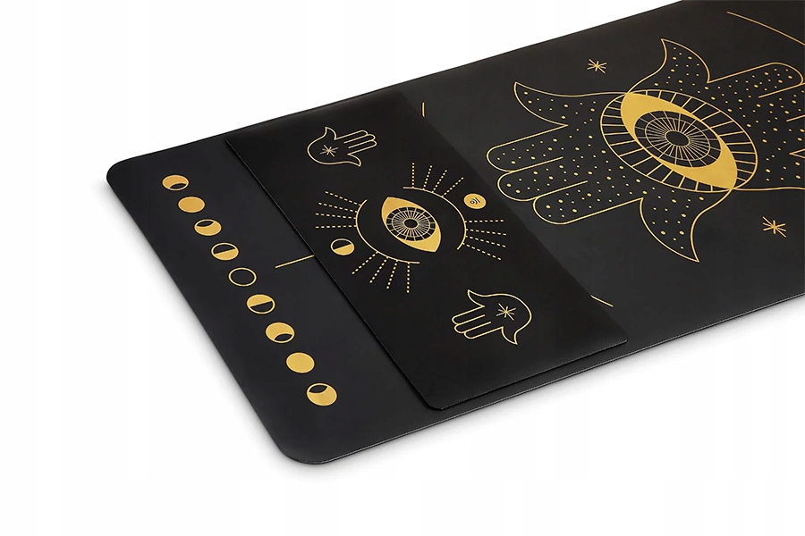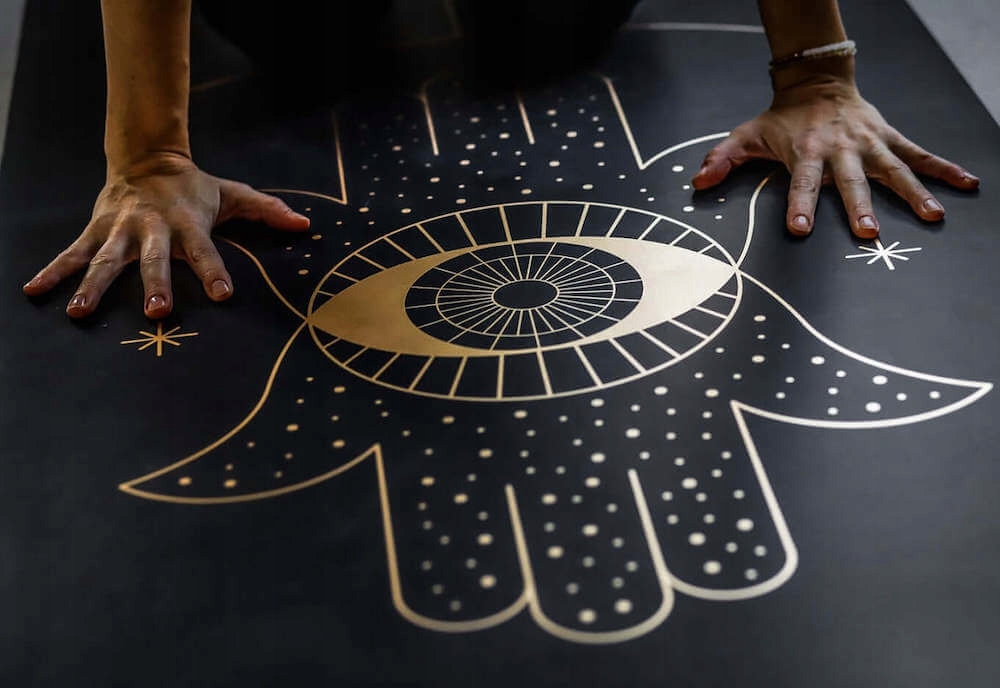 - ma niepowtarzalny, mistyczny design, który kojarzy się z starożytnymi rytuałami, jest owiany tajemnicą, zachęca do częstego wchodzenia na matę i przenoszenia się wyższe stany świadomości dzięki praktyce jogi i medytacji