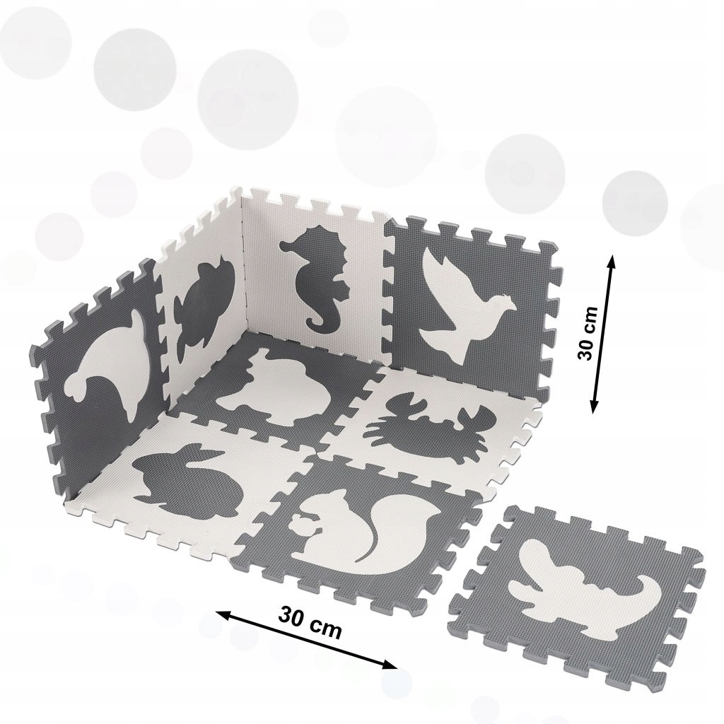 MATA EDUKACYJNA PIANKOWA PUZZLE ZWIERZĄTKA SZARA 85 X 85 CM 9ELEMENTÓW