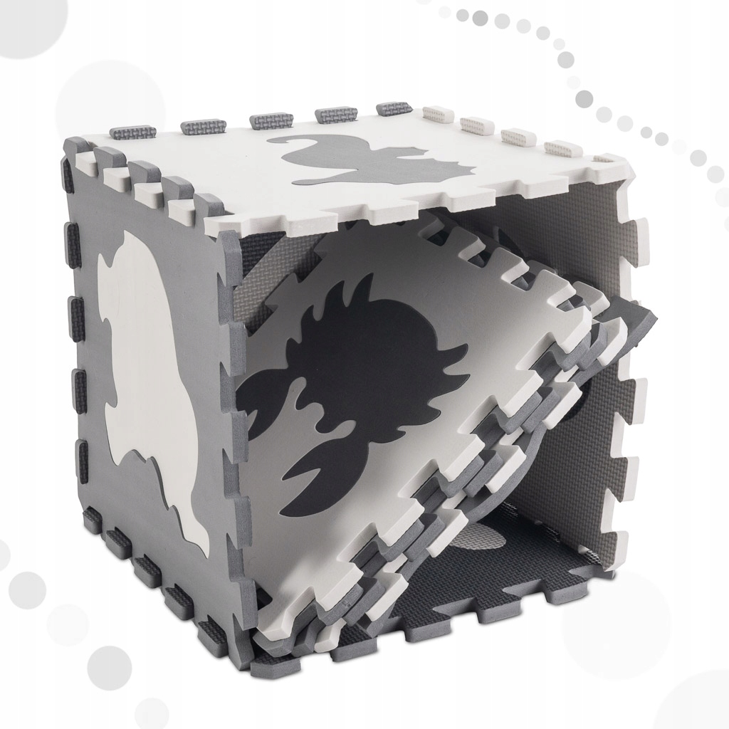 MATA EDUKACYJNA PIANKOWA PUZZLE ZWIERZĄTKA SZARA 85 X 85 CM 9 ELEMENTÓW