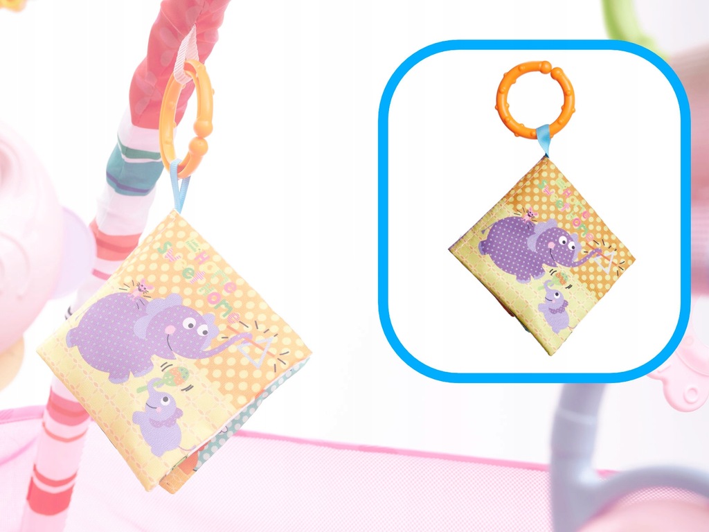 Dołączone do niej kolorowe grzechotki i książeczka z szeleszczącymi stronami przyciągną uwagę maluszka i będą działały stymulująco na zmysł wzorku, słuchu i dotyku. Co więcej będą stanowiły doskonały wstęp do poznawania świata kształtów i kolorów.
