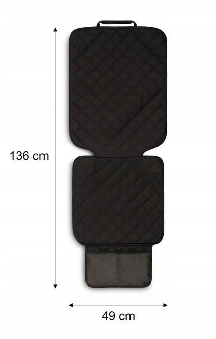 Mata zabezpiecza siedzisko i oparcie fotela samochodowego przed uszkodzeniami, przetarciami oraz zabrudzeniami. Wykonana jest z wodoodpornego, łatwego w konserwacji materiału. Dzięki uniwersalnemu rozmiarowi 49x136 cm pasuje do większości foteli. Gumowe tasiemki pozwalają na łatwy montaż i są nieodczuwalne przez pasażerów. Mata jest wykończona lamówką.