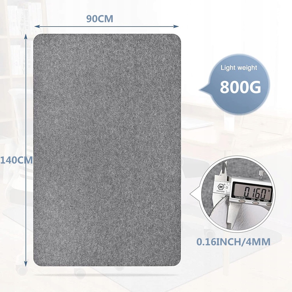 【Jakość premium i materiał przyjazny dla środowiska】Mata na krzesło ma rozmiar 140x90cm. Wykonana jest z włókniny i warstwy PE film.No składanie, non curling, non-fading, bez zapachu, pet friendly, nietoksyczne. Ta mata krzesła jest przeznaczona tylko dla HARD FLOOR, nie dla dywanu. UWAGA: Proszę oderwać folię PE z tyłu przed użyciem.