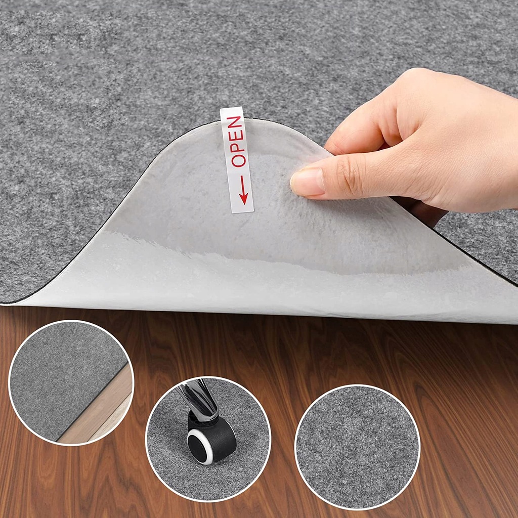 【Efektywnie HARD FLOOR Protector】Mata podłogowa zapobiega zużyciu kół lub podłóg, takich jak twarde drewno, płytki, laminat, podłogi linoleum (NIE nadaje się do żadnych dywanów lub pół dywanów), i przedłużyć ich żywotność. To również pomóc zmniejszyć hałas toczenia krzesła, nawet grając w gry lub pracy w nocy nie wpłynie na innych. PLEASE NOTE: Jest to dywanowa mata pod krzesło, a nie plastik czy guma. I jest warstwa kleju na plecach, ale nie spowoduje to żadnych szkód dla twojej drewnianej podłogi. Nie posiada żadnych pozostałości.