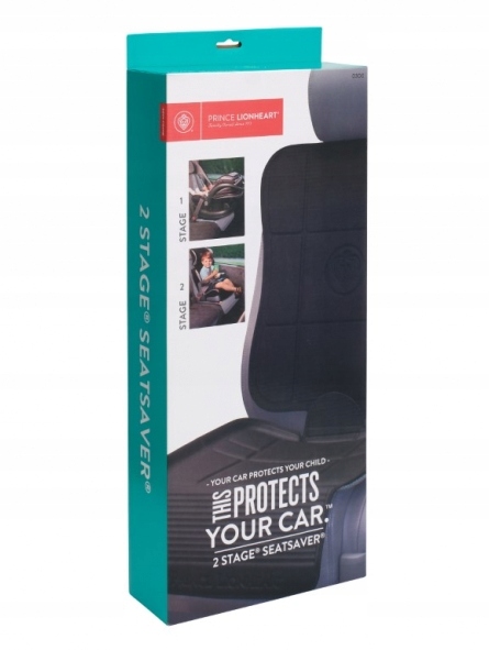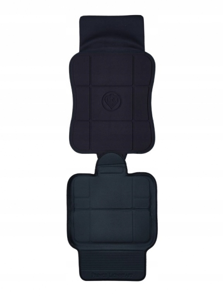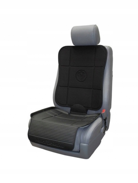 Dwuczęściowa mata ochronna pod fotelik samochodowy chroni siedzenie samochodu przed wgnieceniami i zadrapaniami.