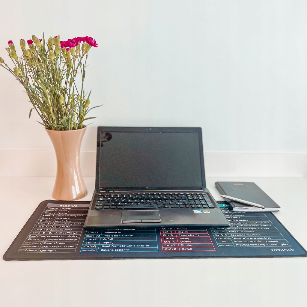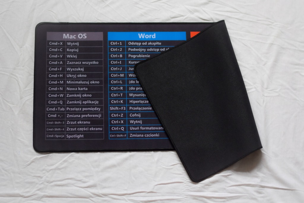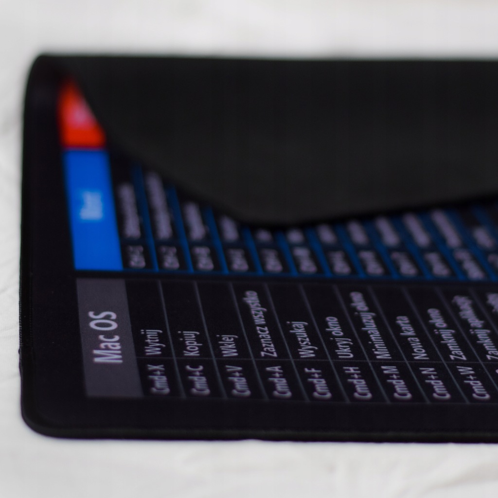 Ta mata została wykonana z wysokiej jakości naturalnej gumy. Zostały na nią naniesione skróty klawiszowe jakie możesz używać w Wordzie, Office oraz Excelu. Posiadasz Maca? To nic! Przewidzieliśmy to i umieściliśmy również skróty klawiszowe jakie możesz wykorzystywać IOS.