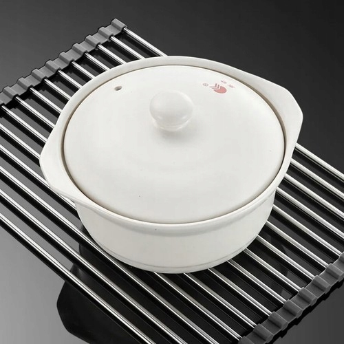- UNIWERSALNA - rolowana mata pozwoli nie tylko osuszyć naczynia po zmywaniu, ale opłukać i osuszyć owoce i warzywa bez wyciągania naczyń z komory zlewu. Wykorzystuj ją również jako podstawka pod gorące garnki i naczynia.