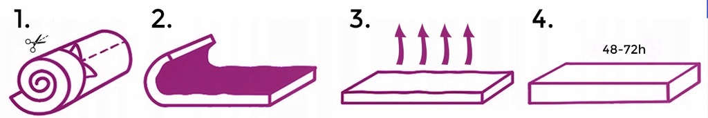 Po otrzymaniu towaru należy ściągnąć folię ochronną i umieść materac w przestronnym miejscu np. na stelażu łóżka. Materac zacznie się rozprężać pozostawiając go, aż odzyska swoją pełną objętość (48-72 godziny). Materac można użytkować, gdy ten odzyska swój właściwy kształt. Nie zaleca się przechowywania materaca hermetycznie zapakowanego dłużej niż przez 14 dni. Po rozpakowaniu materaca nie należy go przewozić w pozycji pionowej.