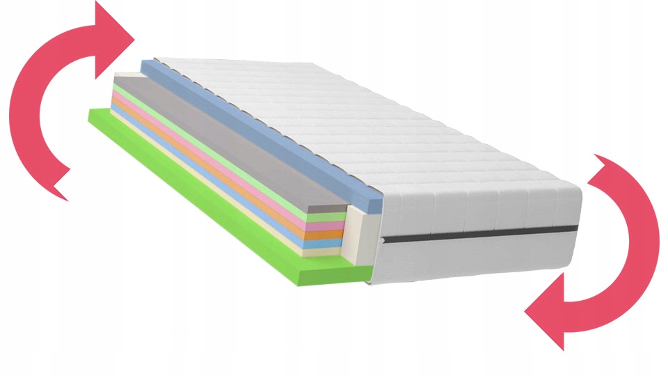 Konstrukcja materaca daje możliwość korzystania z dwóch powierzchni, znacząco wydłuża to jego żywotność. Materac jest DWUSTRONNY.