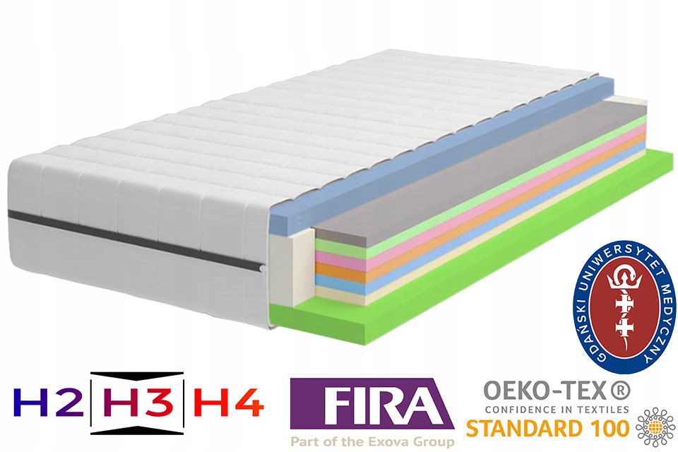Materac zgodny z Certyfikatem bezpieczeństwa Oeko-tex standard 100 - produkt ekologiczny bez żadnych dodatków chemicznych szkodliwych dla zdrowiaPianka pozytywnie oceniona pod względem higienicznym przez Gdański Uniwersytet Medyczny