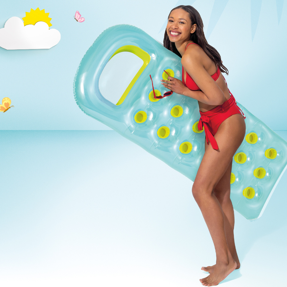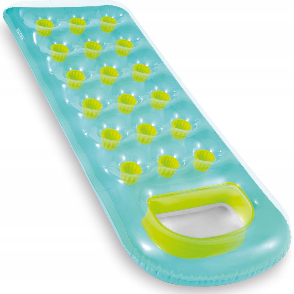 Dmuchany materac plażowy to najnowsza propozycja firmy Intex. Wymiary materaca zapewni swobodny wypoczynek dla jednej osoby. Oryginalne oraz żywe kolory tworzą przyjemny dla oka oraz oryginalny design. Materac został wyposażony w dmuchany zagłówek oraz przezroczyste okienko.