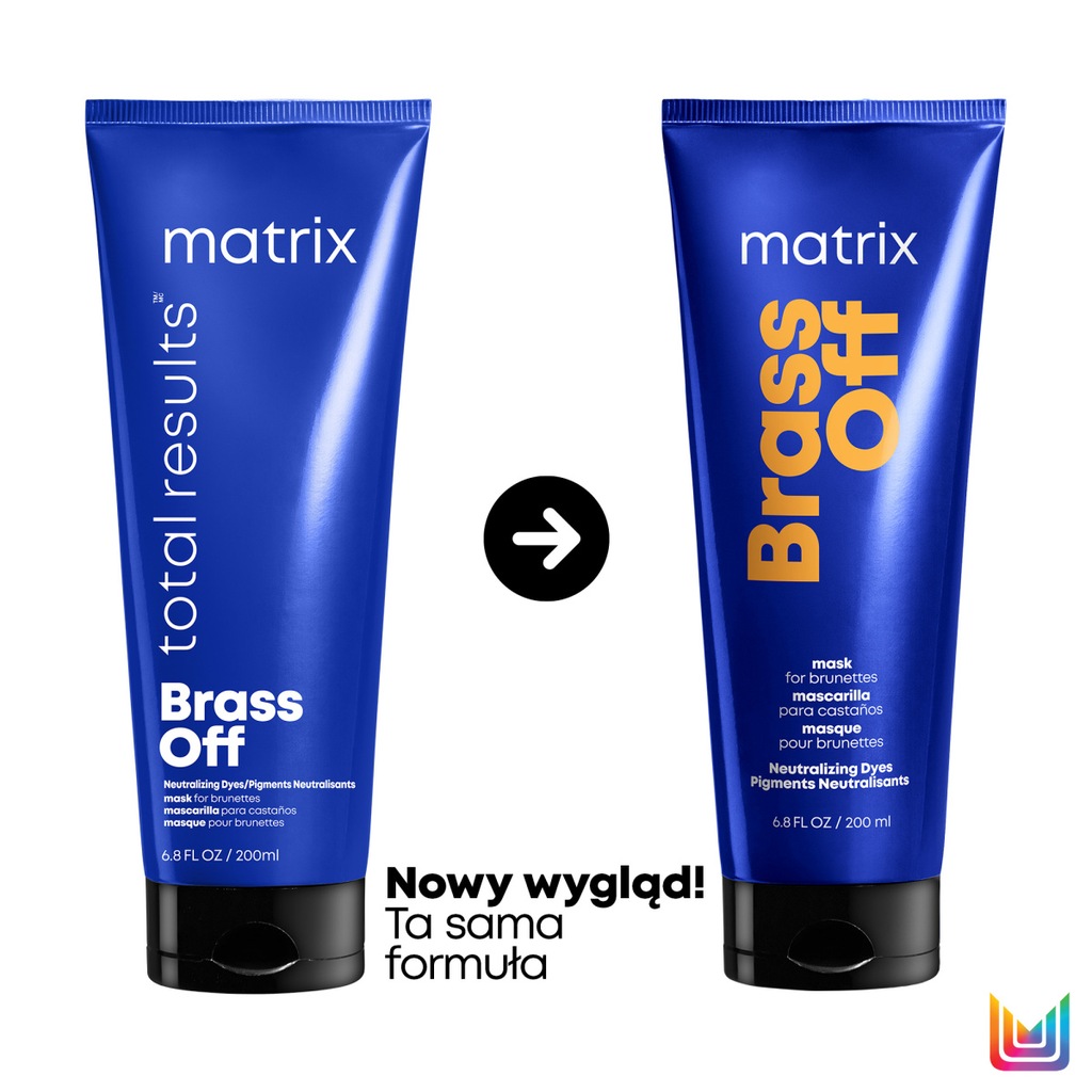 Maska Matrix Total Results Brass Off przeznaczona jest dla brunetek z rozjaśnionymi włosami lub pasemkami. Maska zawiera niebieskofioletowy pigment, neutralizujący czerwone i miedziano-złote odcienie, dzięki czemu ochładza i tonalizuje kolor. Ultra bogata formuła wspomaga regenerację i ochronę łamliwych włosów. Pomaga chronić i regenerować włosy rozjaśnione, dodając im miękkości. Składniki nabłyszczające pomagają włosom odbijać światło, nadając im blask. Maska nadaje się do włosów farbowanych i naturalnych.