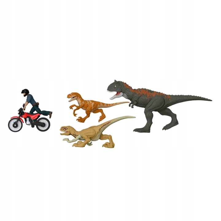 Przygotuj się na ekscytującą akcję i przygodę z Jurassic World Dominion! Ten pakiet, inspirowany filmem, zawiera figurki Owena Grady'ego i 3 dinozaurów, a także szczegółowy motocykl.