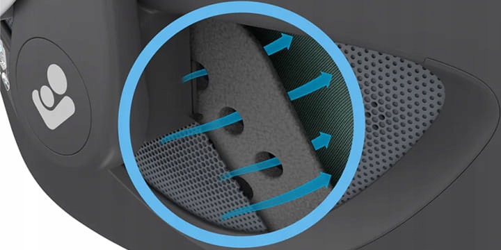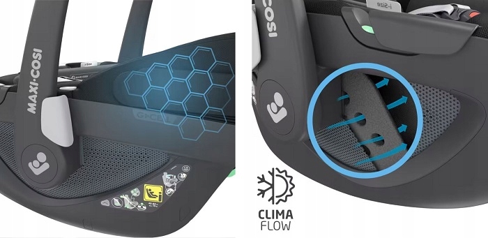 Specjalne panele ClimaFlow, oddychająca pianka i tkaniny wspomagają komfortową cyrkulację powietrza, aby zawsze zapewniać dziecku prawidłową temperaturę.