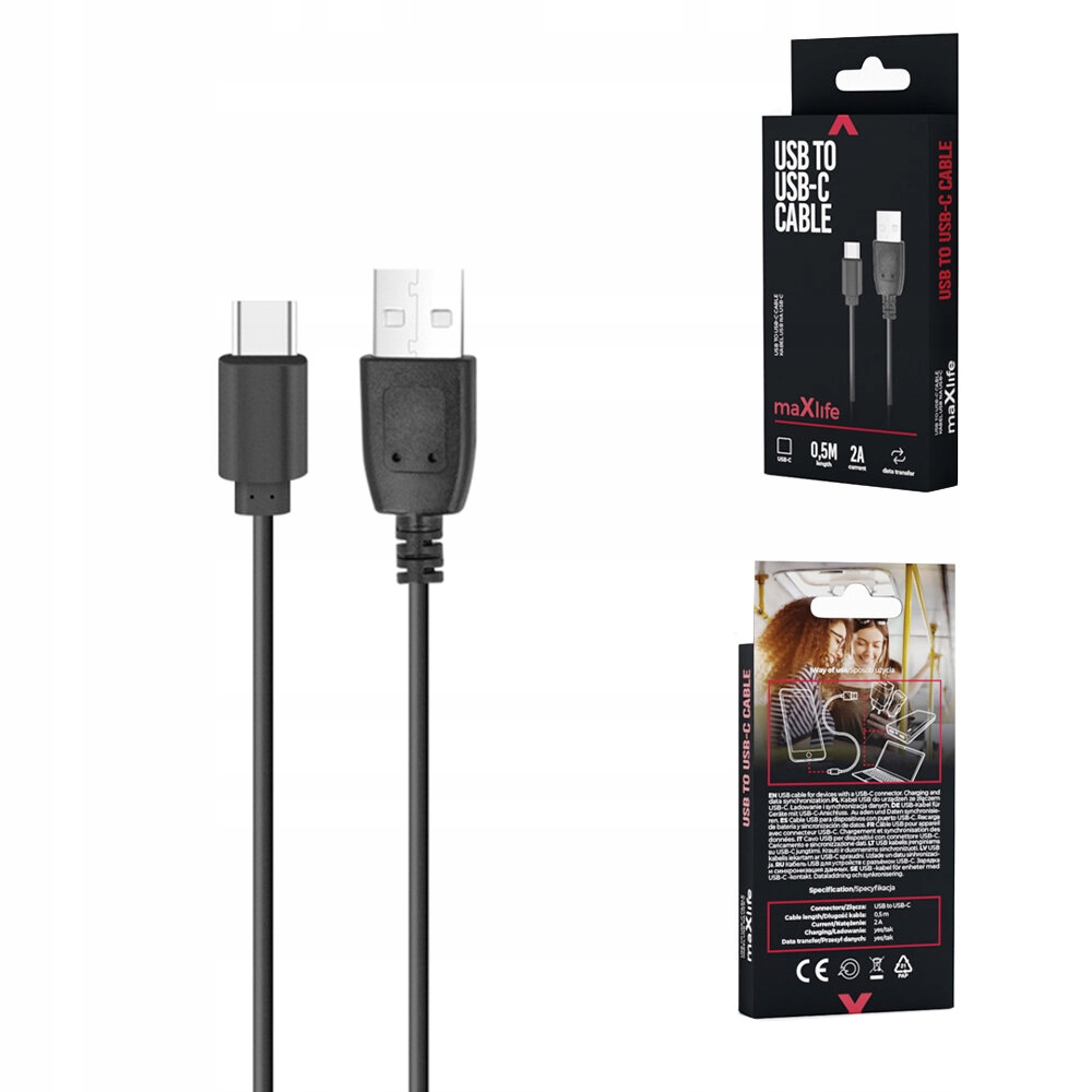 CECHY PRODUKTU Maxlife kabel USB - USB-C 0,5 m 2A czarny