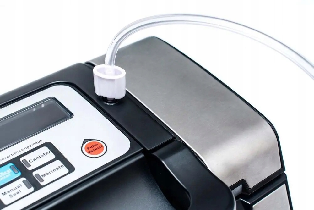 W zestawie znajduje się wąż do nabijania pojemników, z końcówkami po obu stronach