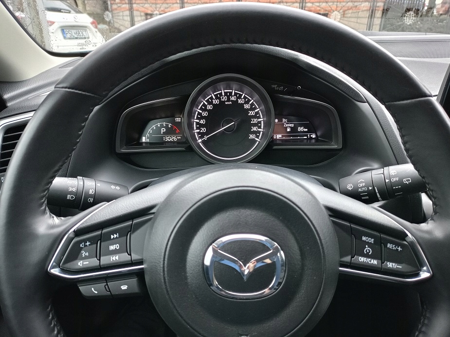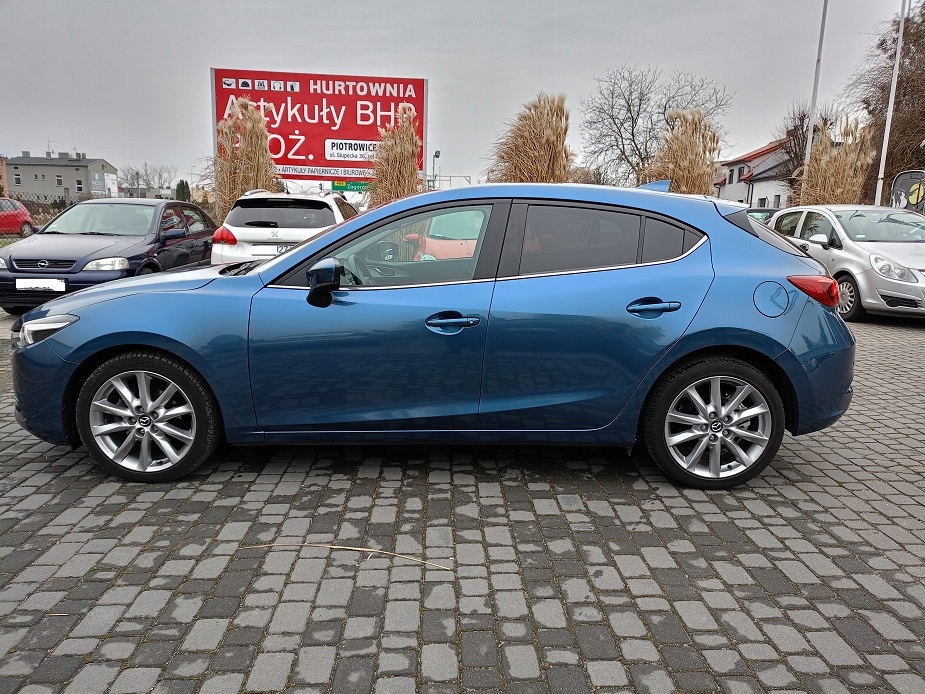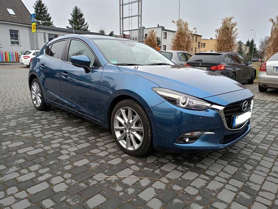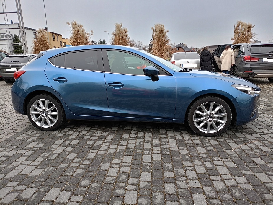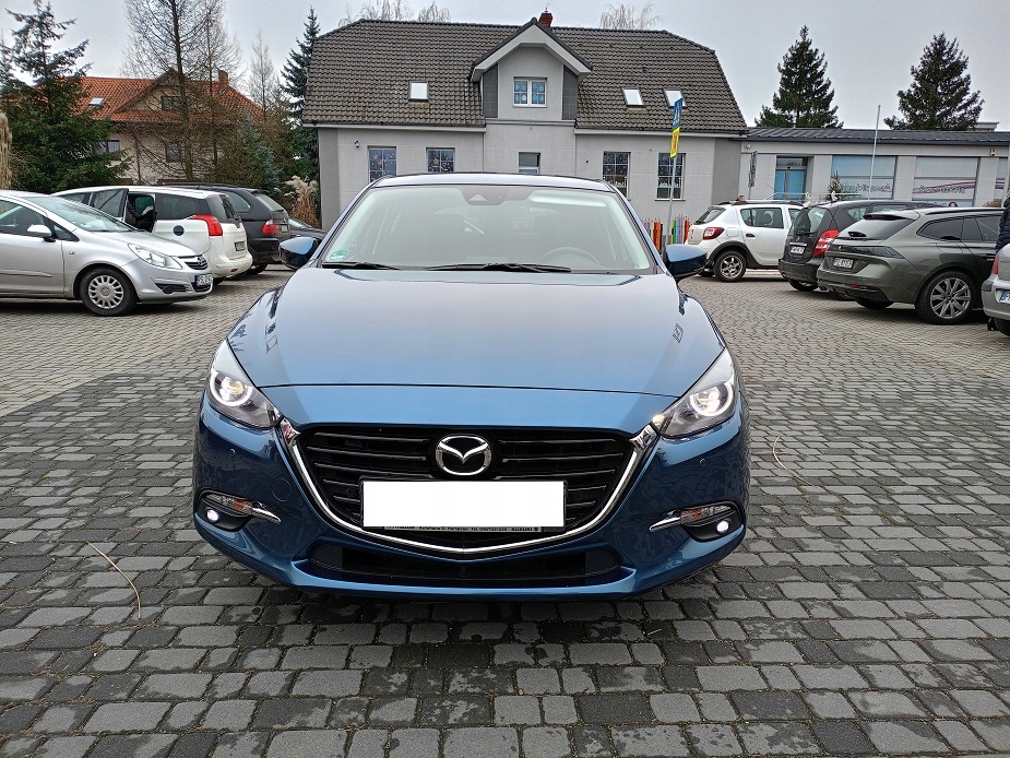 Mazda 3 Skyactiv 2.0 120 KM Automat - bezawaryjna - bardzo ekonomiczna - dynamiczna - w połączeniu z automatyczną skrzynią biegów sprawia, że z jazdy tym autkiem czerpiemy samą przyjemność !!! Mazda w przepięknym kolorze ETERNAL BLUE PEARL ; - na żywo prezentuje się przepięknie !!! Mazda sprowadzona z Niemiec na niemieckich dokumentach rejestracyjnych !!! Stan techniczny i wizualny auta BDB - JAK NOWY !!! Silnik zawieszenia skrzynia biegów stan BDB !!! Oryginalny znikomy przebieg 13000 KM !!! -- 6 x airbag -- 4 x el szyby -- El lusterka - podgrzewane - el składane po zamknięciu auta -- Podgrzewane fotele -- Podgrzewana kierownica - skórzana - wielofunkcyjna -- Klimatronic dwustrefowy -- System multimedialny dotykowy -- Radio CD -- Nawigacja -- Bluetooth z zestawem głośno mówiącym -- Komputer pokładowy - menu w Języku polskim -- Światła przednie LED -- Światła do jazdy dziennej LED -- Światła przeciwmgielne LED -- Światła tylne LED -- ABS -- ESP -- TCS -- Asystent martwego pola - RVM -- Asystent zapobiegania kolizji -- Asystent wspomagający w ruszaniu pod górę - Hill Holder -- System Key Less - odpalanie przyciskiem -- System Key Less GO - bez kluczykowy dostęp -- Wspomaganie kierownicy -- Centralny zamek + pilot -- Alufelgi 18" -- Parktronc przód -- Parktronic tył -- Kamera cofania -- Tempomat -- System start\stop - i-Stop -- 2 x kluczyk -- Sensor deszczu -- Sensor zmierzchu Możliwość sprawdzenia auta na stacji diagnostycznej !!! Mazda naprawdę godna uwagi i polecenia !!! Zapraszam na oględziny i jazdę próbną !!!