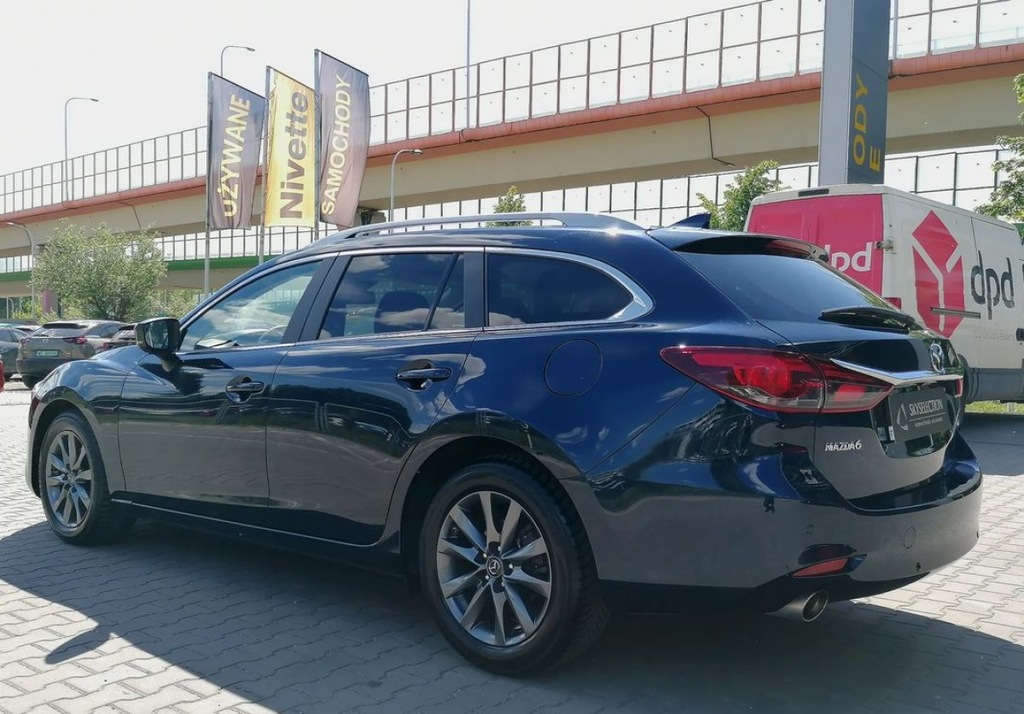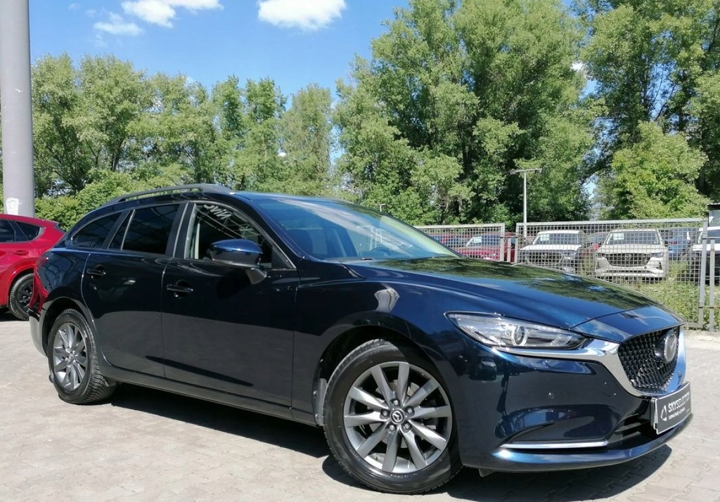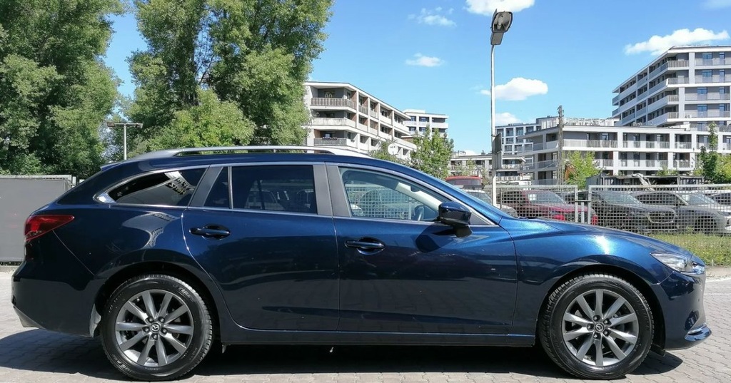 MAZDA 6 kombi z silnikiem benzynowym 2.0 o mocy 165 KM w wersji wyposażenia Center Line z automatyczną skrzynią biegów w lakierze DEEP CRYSTAL BLUE.