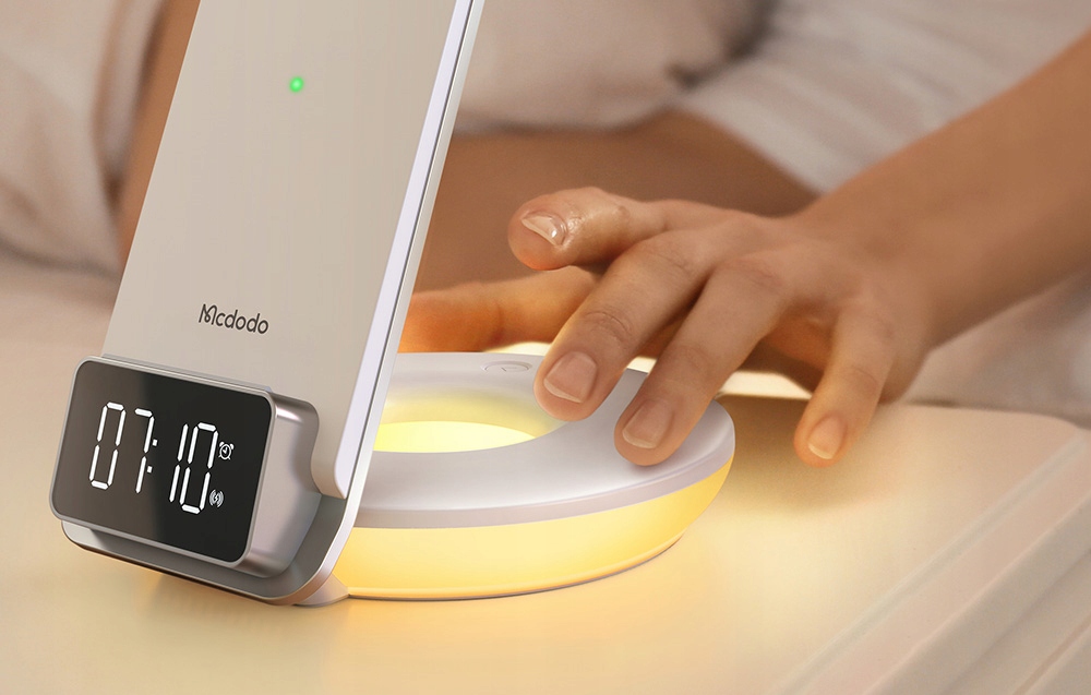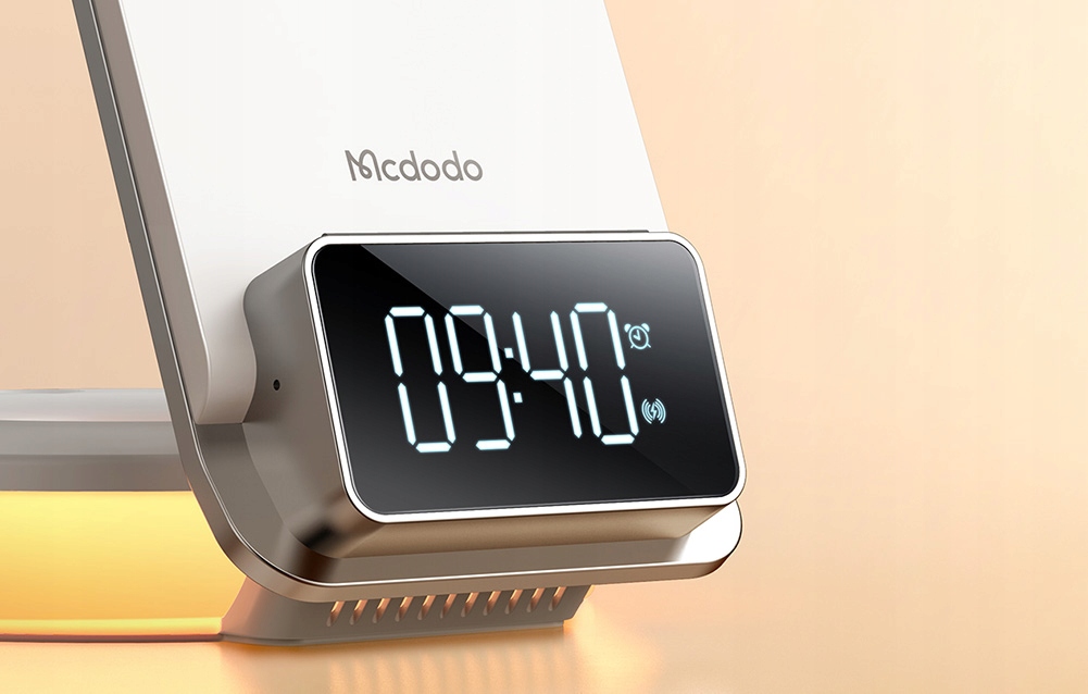 Wielofunkcyjna ładowarka Mcdodo nie tylko odnowi energię Twojego smartfona, ale i posłuży Ci jako lampka nocna oraz budzik! Oferuje ładowanie z maksymalną mocą do 15 W. Lampka emituje delikatne, ciepłe światło, które sprawi, że wieczorne czytanie książek stanie się przyjemniejsze. Zegar z funkcją budzika pozwoli Ci szybko rozpocząć dzień, a praktyczna podstawka ułatwi Ci korzystanie z telefonu. Jej obsługa nie będzie stanowić dla Ciebie żadnego problemu, a dzięki przenośnej, składanej konstrukcji nie zajmie dużo miejsca.