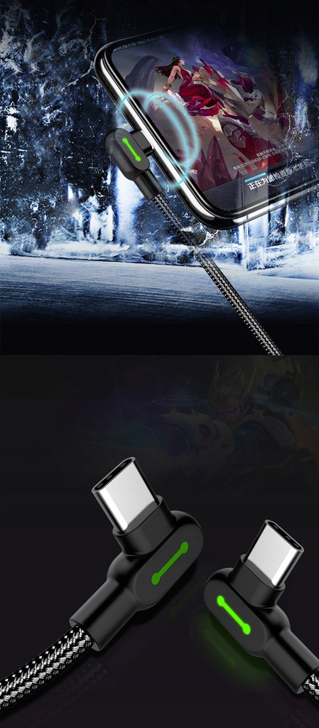 Mcdodo Kątowy Kabel Przewód Usb Do Usb-c Szybkie Ładowanie Telefonu 3 M Led