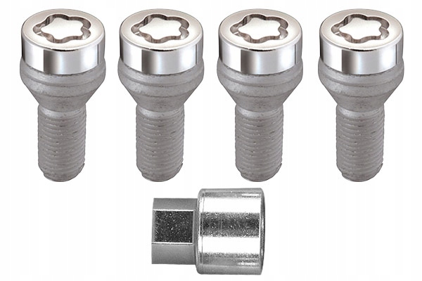 Zestaw zawiera 4 śruby zabezpieczające oraz nasadkę/złodziejkę na klucz 17.