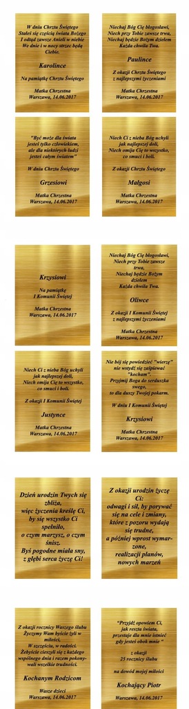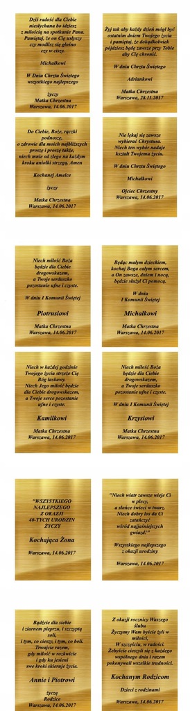 - Na życzenie Grawerowaną tabliczkę z dowolnie podaną przez Ciebie dedykacją