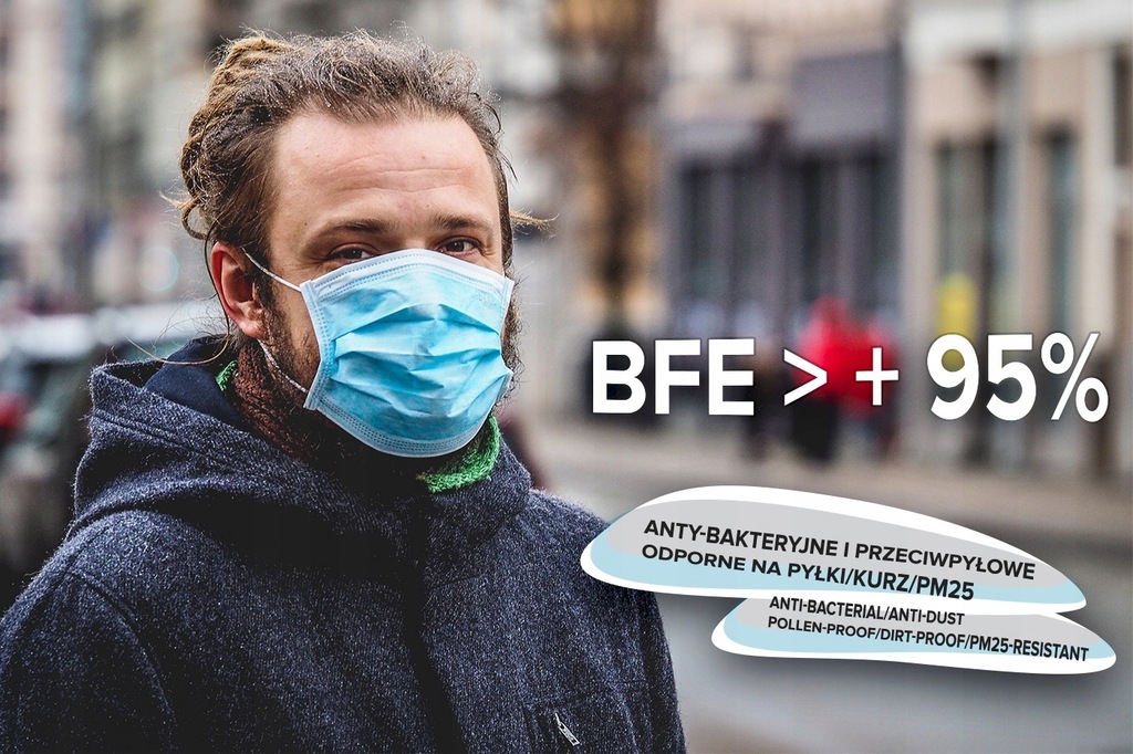 W zestawie 10 sztuk 3 warstwowych masek ochronnych.