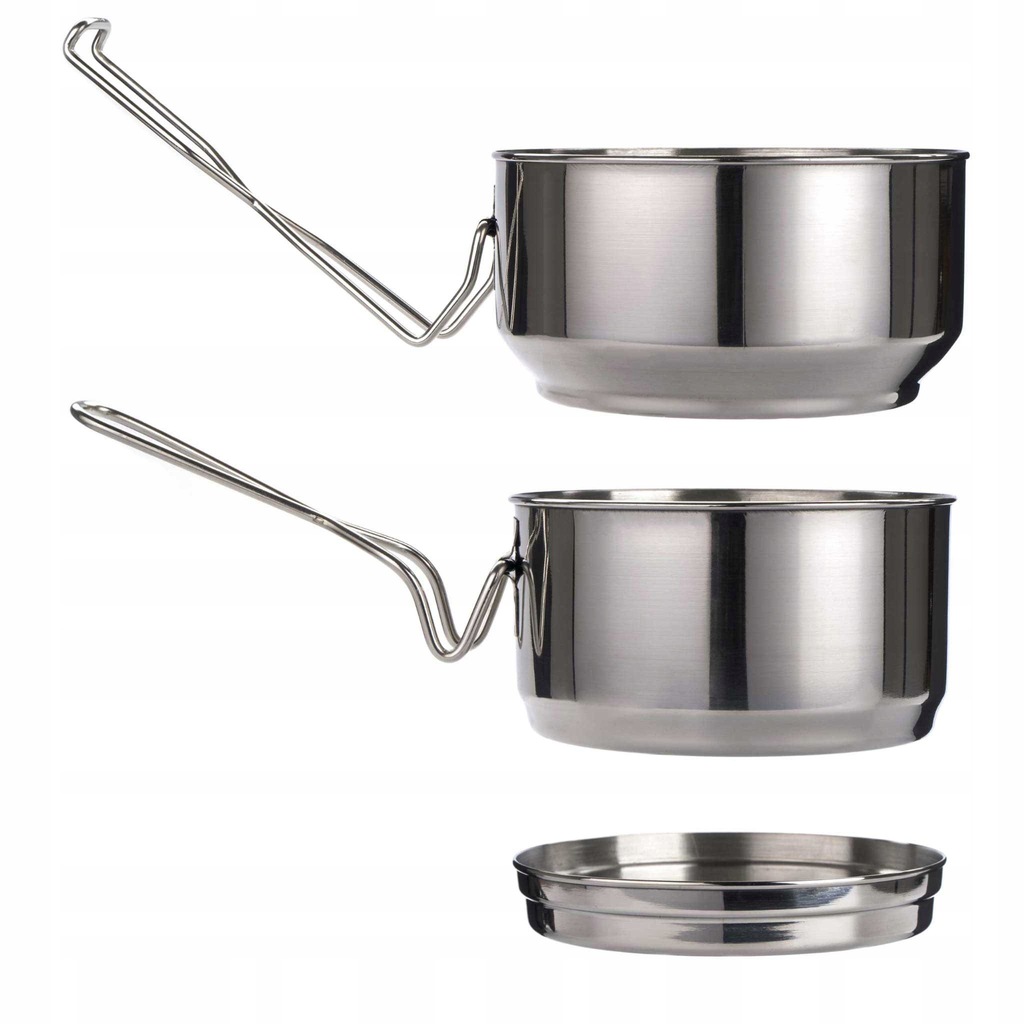 Menażka ze stali nierdzewnej firmy Helikon to zestaw praktycznych pojemników do gotowania oraz spożywania ciepłych posiłków. Wykonanie ze polerowanej stali nierdzewnej ułatwia dbanie o czystość pojemników oraz wyklucza możliwość pojawienia się rdzy. Menażka wykonana jest z solidnej, grubej stali nierdzewnej, co pozwala na gotowanie bezpośrednio na ogniu bez ryzyka przepalenia naczyń.