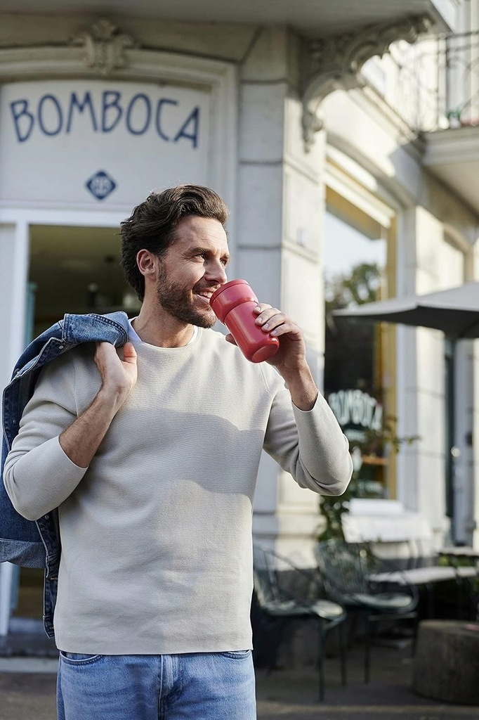 Pojemnik zawiera przegrodę w zestawie + kubek podróżny 100 % szczelności z podwójnymi ściankami