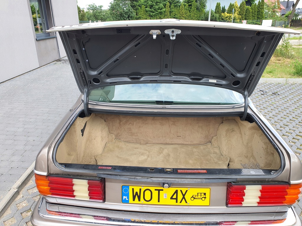 No tak pełne wyposażenie – Elektryczna roleta na tylnej szybie to banał ale pompowane fotele z szerokim zakresem ustawień to już coś innego – szczególnie, że mówimy o samochodzie produkowanym od 1981 roku! W tych latach bogate wyposażenie oznaczało wspomaganie kierownicy i czasem elektrycznie sterowane szyby. Jednak w tych latach Mercedes był technologicznym liderem Audi i BMW były daleko w tyle, przynajmniej jeśli chodzi o limuzyny. Co jeszcze możemy znaleźć w SEC-u?