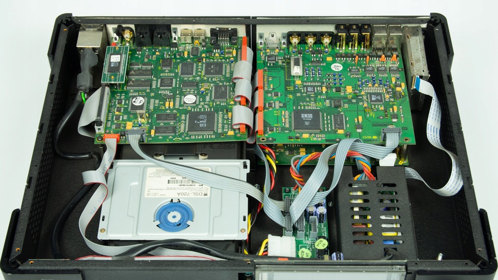 - W środku, porównując ze zdjęciami na stronie Meridian, poza brakiem pokrywy odtwarzacza wygląda na kompletny.