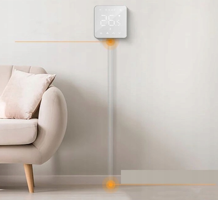 Oszczędzaj na kosztach ogrzewania dzięki inteligentnemu harmonogramowi graficznemu 7x24 godziny. Zaoszczędź więcej na rachunkach za ogrzewanie. Termostat posiada system podwójnych czujników, zintegrowany czujnik temperatury do dokładnego pomiaru temperatury powietrza, zewnętrzny czujnik temperatury do ochrony podłogi przed przegrzaniem.